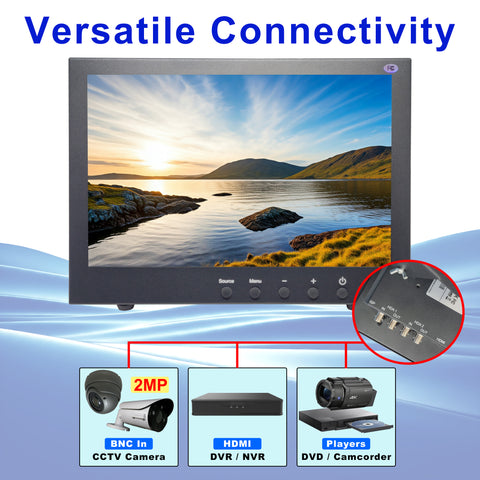 - 1. 10.1" HD 2MP/1920x1080P over Coax LED Security Monitor. 1 HDMI & 2 Full HD BNC Video Inputs. BNC video-in port works directly with the HD security cameras without going through any DVR or converters. It will allow security cameras send clear video by using a single Coax cable to the HD monitor, and it can prevent fuzzy or unclear images between the camera, recorder, and monitor. And 2 BNC Video Outputs for Second Monitor. Comprehensive range of High Definition product line, including cameras, DVRs/NVRs, and HD monitors.