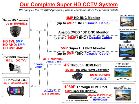 - 3. HD 2MP security monitors with BNC inputs allows them to be connected directly to the new Full HD up to 2MP/1920x1080 resolution cameras for the much clear and more accurate video feed. And it is 5 times higher than the Standard Definition (0.46MP/960H, 0.3MP/CVBS or VGA) BNC resolution from Normal CCTV/security monitors. Support up to 2MP/1920x1080P HD-TVI, HD-AHD, and HD-CVI.
